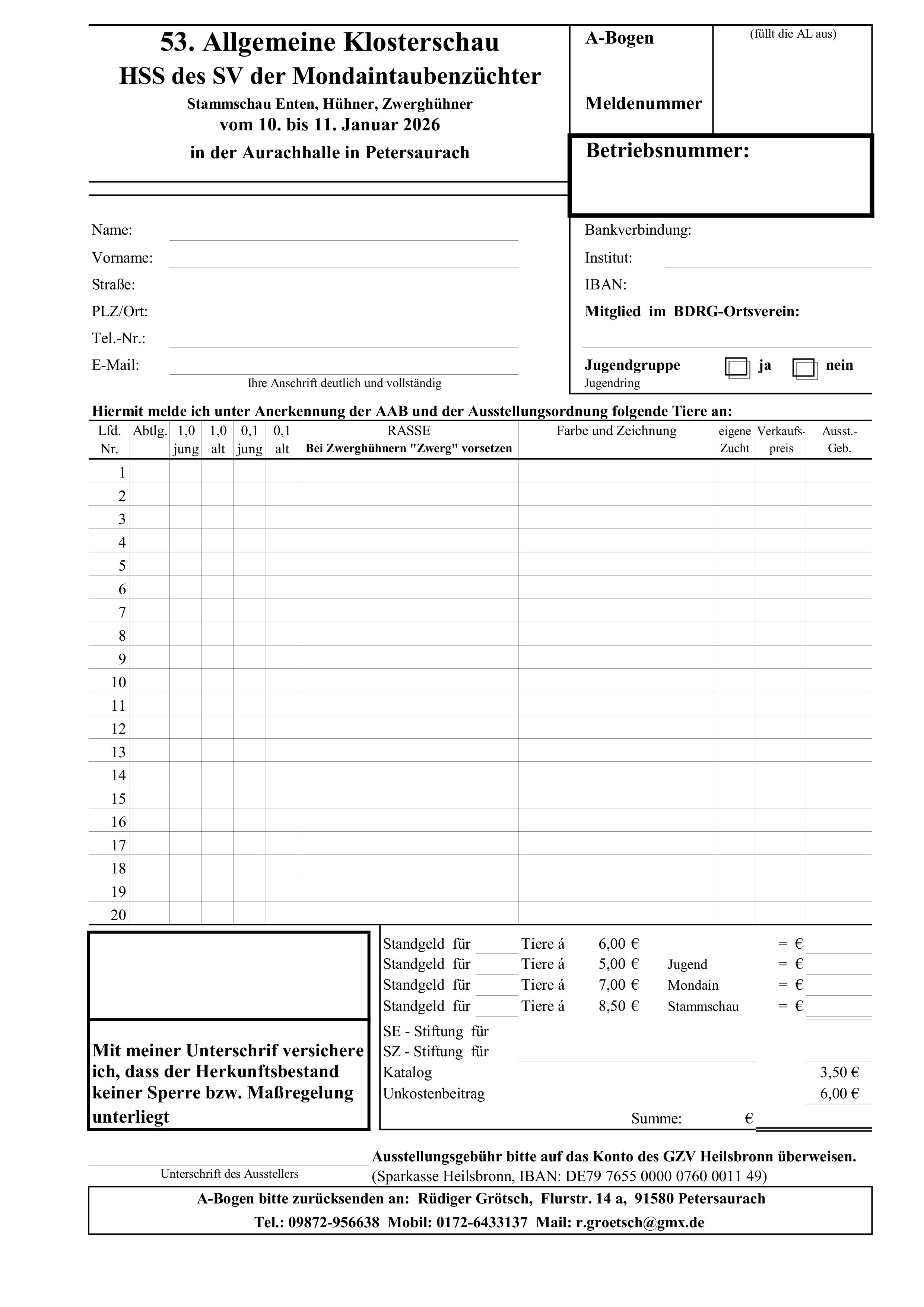 Der Geflügelzuchtverein Heilsbronn und Umgebung wurde am 20.3.1904 gegründet. Urheber war der Landwirtschaftslehrer Nipeiller aus Ansbach. Von 40 anwesenden Herren der Gründungsversammlung erklärten sofort 30 ihren Beitritt zum obigen Verein, der den Namen "Nutzgeflügelzuchtverein Heilsbronn und Umgebung" erhielt. Bei der Ausschusssitzung vom 21.03.1904 wurde sofort der Beitritt zum "Landes- und Kreisverband Bayerischer Geflügelzüchter" festgelegt.Ausstellungen wurden vor dem 1. Weltkrieg alljährlich abgehalten, erstmalig am 14.05.1906. Nachdem der 1. Weltkrieg das Vereinsleben lahm legte, wurde erst 1919 wieder eine Schau durchgeführt, die sich dann jährlich wiederholte. In dieser Zeit nannte sich der Verein bereits "Geflügelzuchtverein Heilsbronn und Umgebung". Zum Beginn der jetzigen Glanzperiode des Vereins waren zu der Besprechung am 05.01.1947 nur 6 Mitglieder erschienen. Die 1947 gewählte Vorstandschaft bestand aus den Herren Ludwig Postner als 1. Vorsitzender, Konrad Scherzer als 2. Vorsitzender, Willi Kellermann, Petersaurach, als Schriftführer und Hans Stecher als Kassier. 1948 waren es bereits 52 und bis heute ist die Mitgliederzahl auf 230 gestiegen. Im Jahre 1961 übernahm dann Tierarzt Foertsch die Geschicke des Vereins und stand ihm bis zu seinem Tode im Jahre 1976 vor. Es wurde dann Willi Kellermann zum 1. Vorsitzenden gewählt. Mit Hilfe der Gemeinde Petersaurach konnte Willi Kellermann.im Jahr 2000 den Bau der heutigen Aurachhalle in Angriff nehmen, die noch imselben Jahr auch eingeweiht wurde Im Jahr 2001 folgte ihm Georg Grötsch als 1. Vorsitzender, der dieses Amt bis zu seinem Tod 2006 innehatte. Danach folgte ihm sein Sohn Rüdiger Grötsch. Der sehr rührige Verein zählt viele aktive Mitglieder, die auch größere Ausstellungen beschicken. Die Klosterschauen (letzte 2025 die 52.) werden auch in Zukunft zum Vereinsleben gehören.
